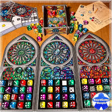 Sagrada est un jeu de pioche de dés et de création de vitraux.